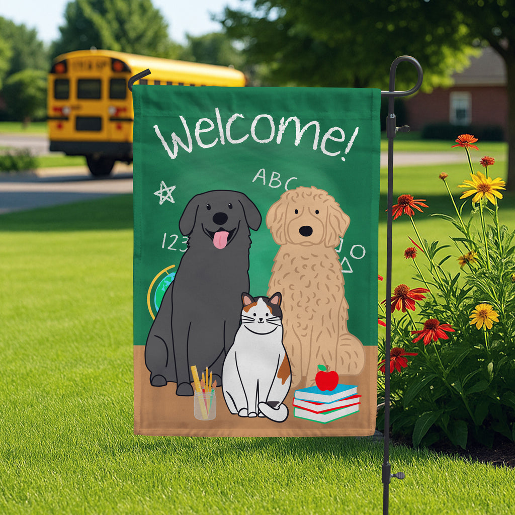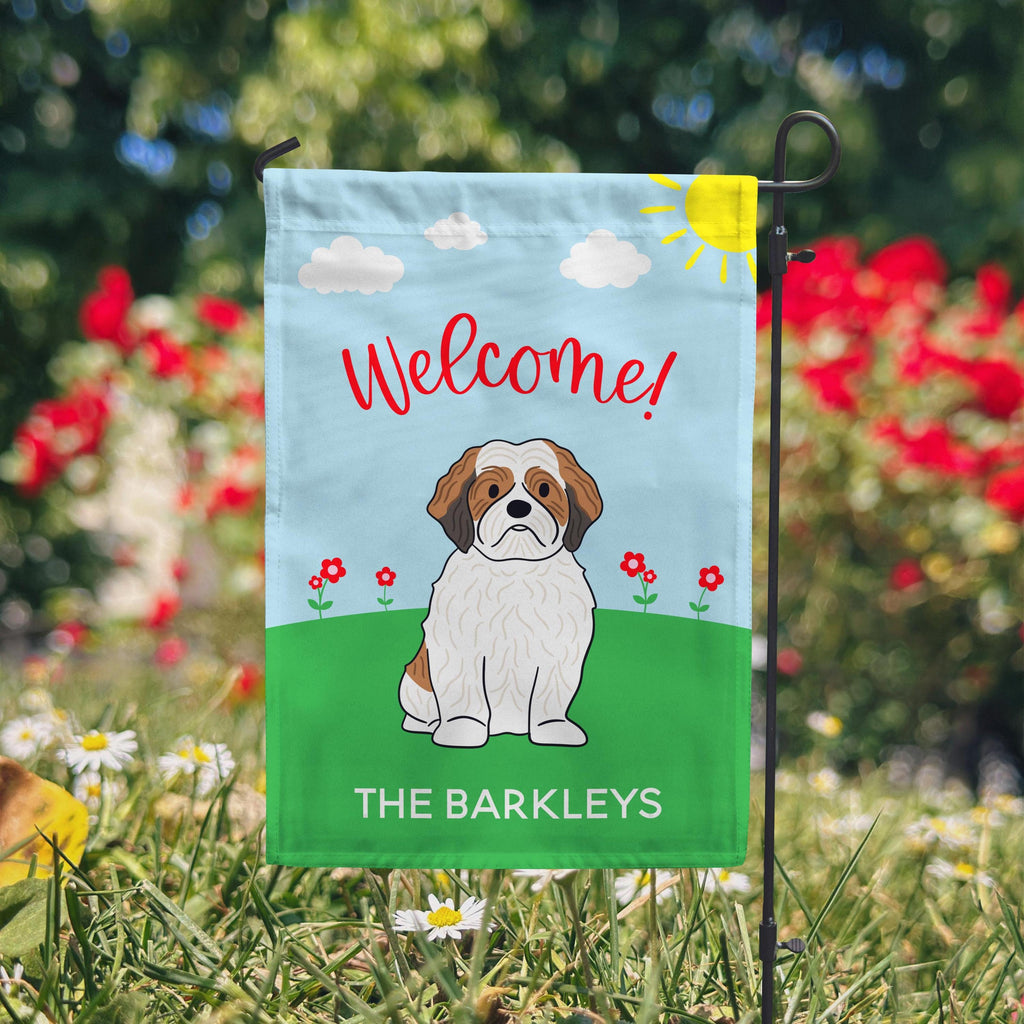 Pomeranian Summer Sunflower Welcome Garden Flag