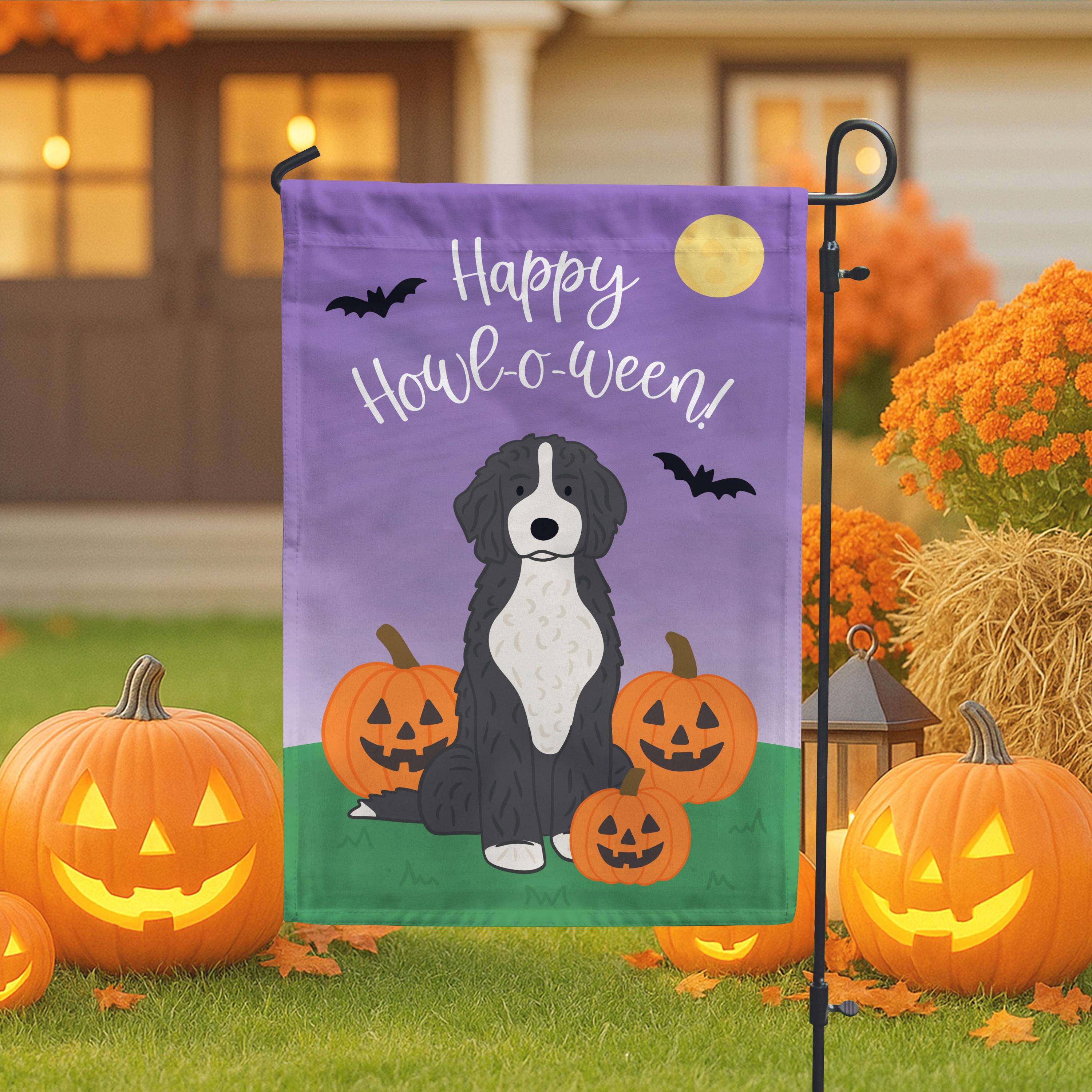 Ready to make your yard the most paw-pular stop on the Halloween stroll? Our "Happy Howl-o-Ween" garden flag features your favorite Doodle starring in this fang-tastic Halloween scene. This flag is all treats, no tricks, and a not-so-furightening way to celebrate spooky season with your favorite sidekick.