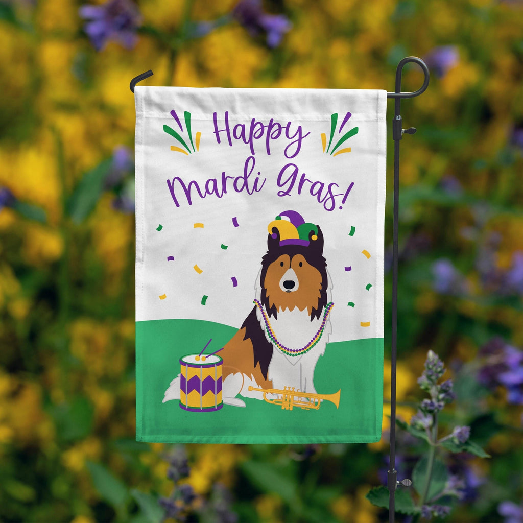 Mardi Gras Shetland Sheepdog Garden Flag