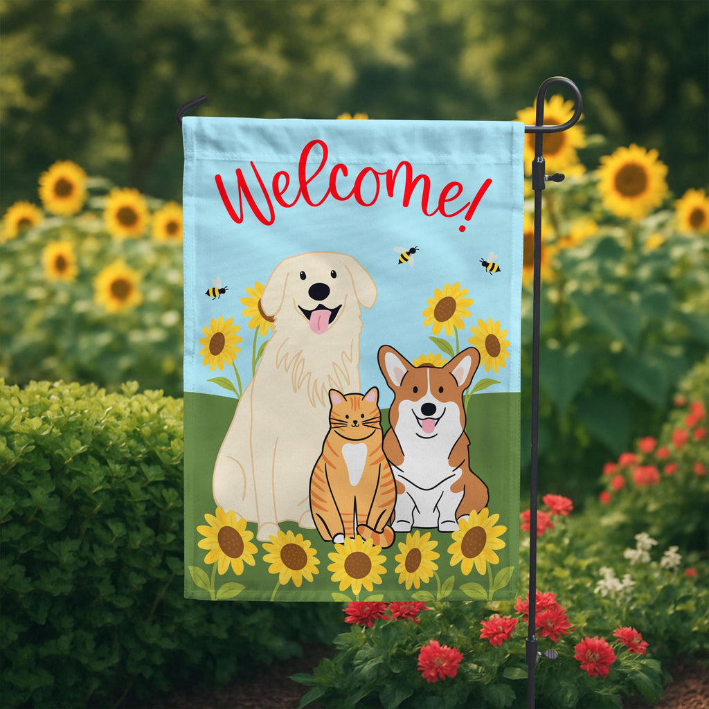 Pomeranian Summer Sunflower Welcome Garden Flag