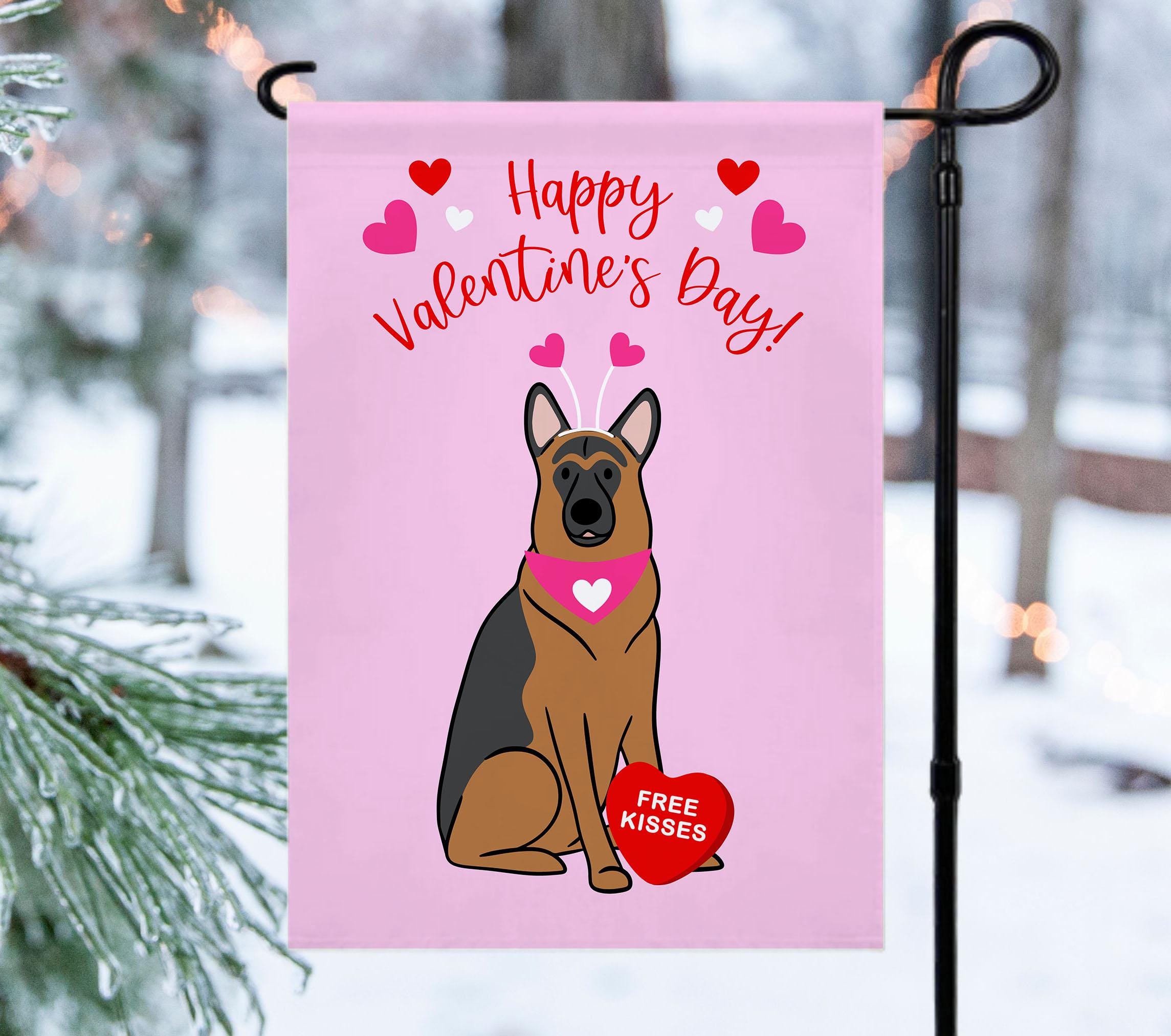 Featuring a lovable German Shepherd, this adorable Valentine garden flag is perfect for dog lovers. Whether you're decorating for the holiday or just celebrating your favorite breed, this flag is a paws-itively perfect way to add personality and charm to your outdoor space. Great for gifting to pet parents or treating yourself! Made with durable, weather-resistant fabric, this charming flag will brighten your yard, garden, or porch all season long.