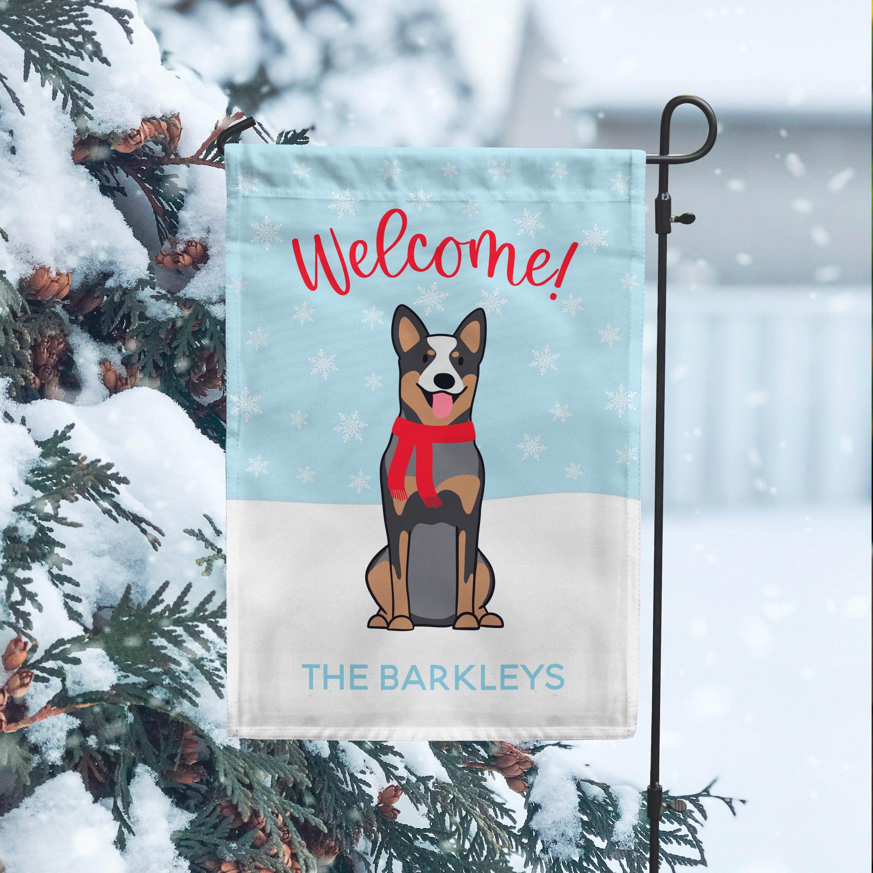 Welcome furry friends and humans alike with our charming Australian Cattle Dog Winter Welcome Garden Flag—because nothing says "paw-some" like customizing your yard with a splash of color just for your lovable pooch! Perfect for dog lovers and pet decor enthusiasts, this flag not only adds a wag-worthy welcome but also makes for a tail-wagging gift— fetch yours today!